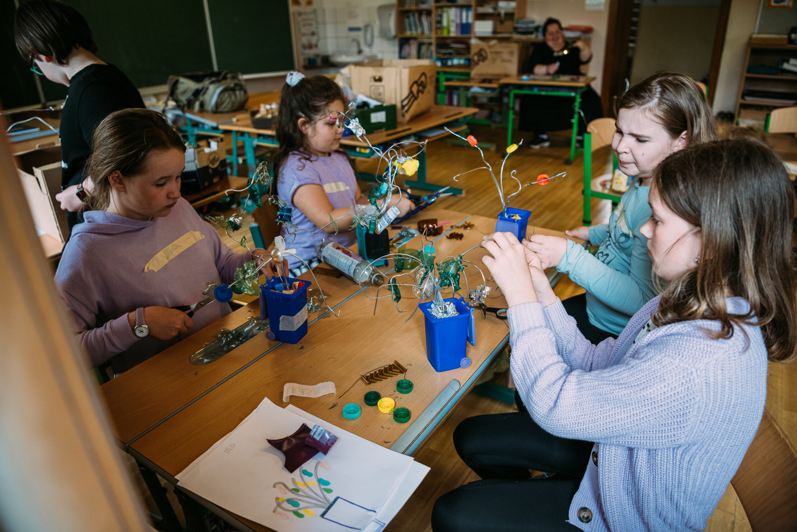 Entstanden ist ein außergewöhnlicher Abfallbaum, der aus einer Europlast-Mülltonne herauswächst. Mithilfe einer recycelten Autobatterie und eines Photovoltaik-Moduls wird das Kunstwerk selbst zum energieautarken Objekt.
